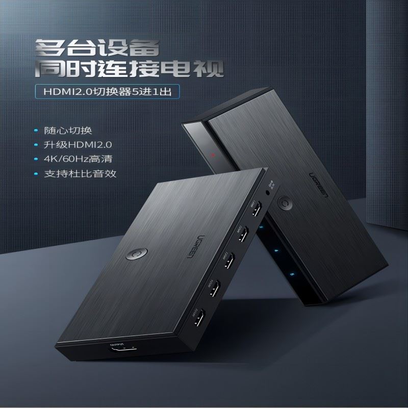 綠聯/HDMI切換器 5進1出 4K高清視頻切屏器